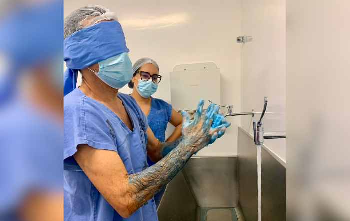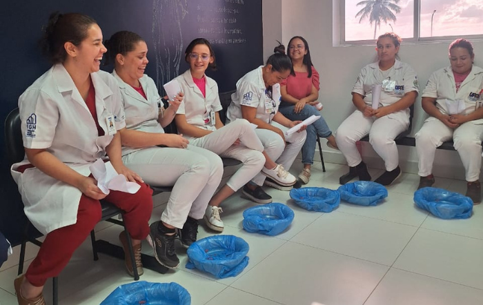 Profissionais da unidade encenaram as etapas da higienização para conscientizar sobre o papel coletivo na prevenção de IRAS