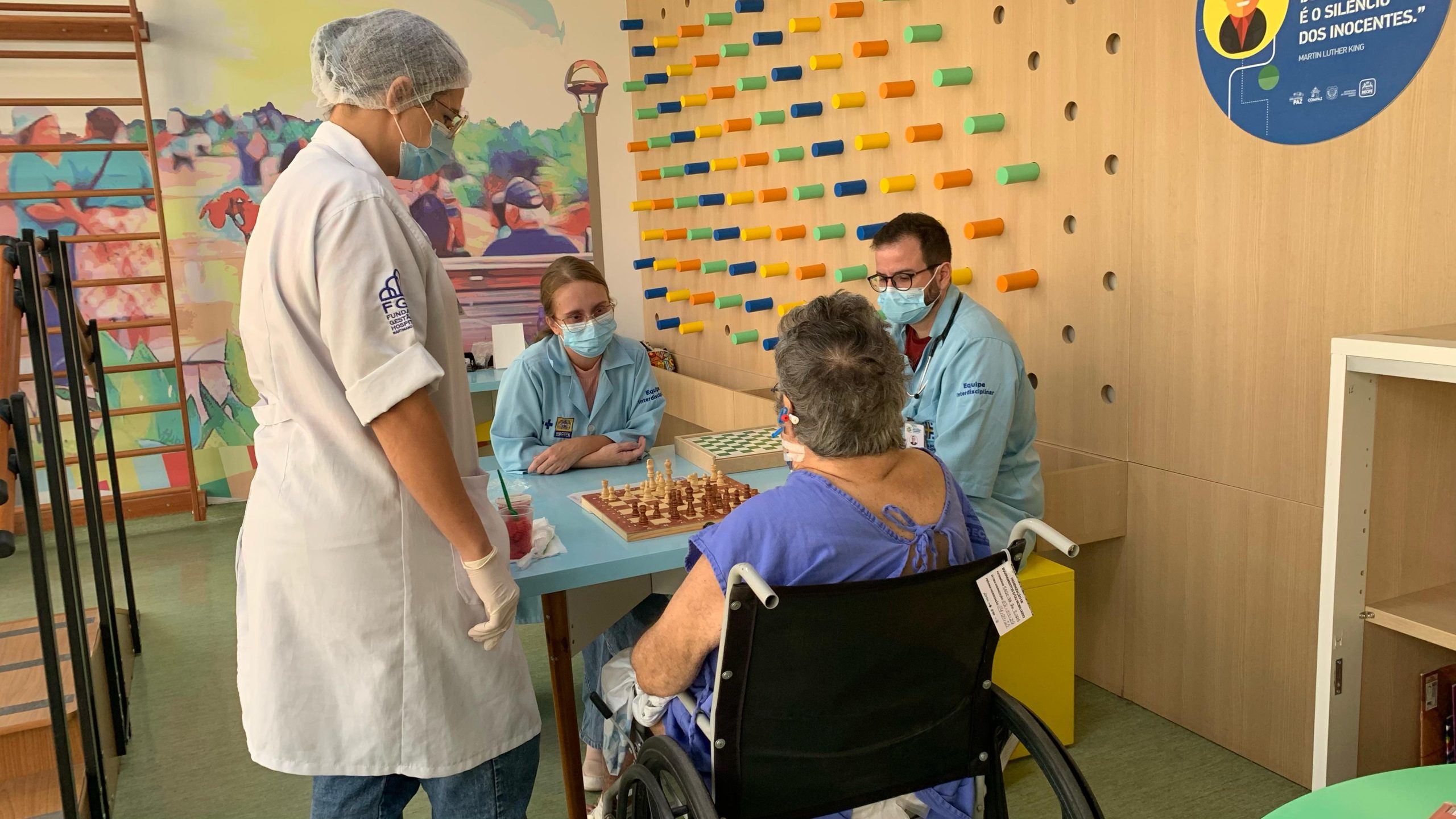 A psicóloga Brenda Oliveira destaca a atuação multiprofissional na reabilitação de pacientes a partir de atividades como essa. “Senhor Marcelo gosta de jogar xadrez em casa e durante o atendimento psicológico destacou a importância dessa atividade para ele. Hoje a psicologia, fisioterapia e terapia ocupacional do hospital ajudaram na recuperação física, emocional e da autonomia e estímulo de sua memória e atividades motoras através de uma partida de xadrez programada especialmente para paciente”, comentou a profissional.