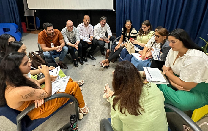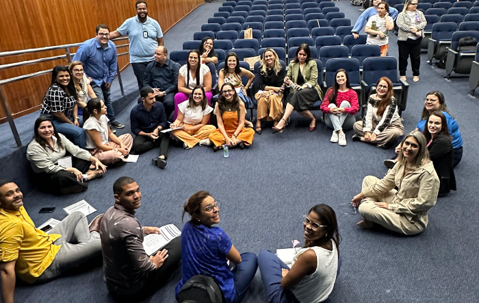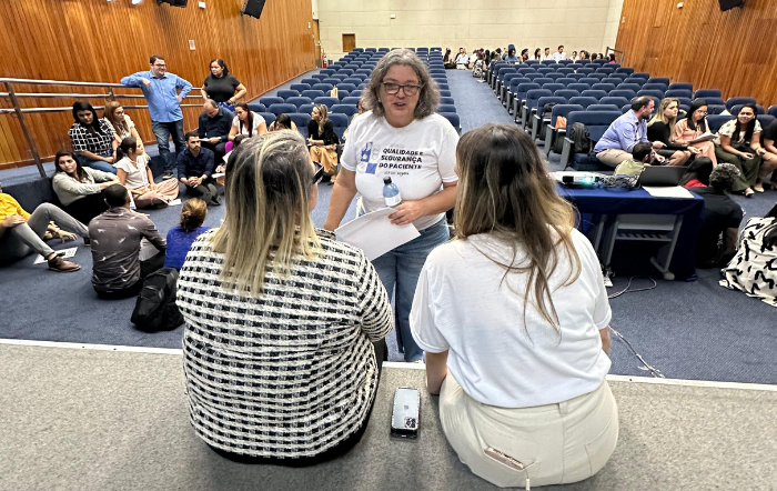 À tarde, foram formados cinco grupos, cada um com as equipes de um hospital, para que, a partir do conteúdo apresentado nas palestras, eles discutissem em qual estágio a unidade está hoje e planejasse ações futuras de melhorias.