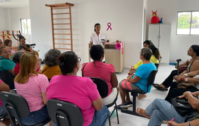 “Aqui na unidade, entre os pacientes que atendemos, mais de 90% são do sexo feminino e grande parte dessas mulheres está numa faixa etária considerada ‘de risco’ para o câncer de mama. Diante disso, identificamos a necessidade de ter um momento além da Sala de Espera para abordarmos esse tema com mais profundidade”, explicou a fisioterapeuta, acrescentando que foi um momento para tirar dúvidas e orientar as pacientes de uma forma mais descontraída.