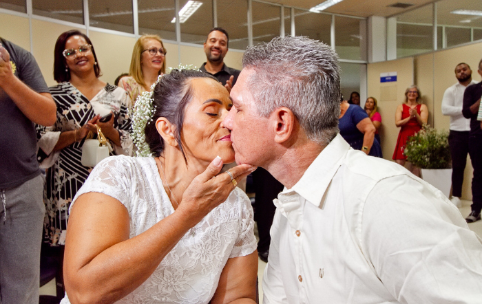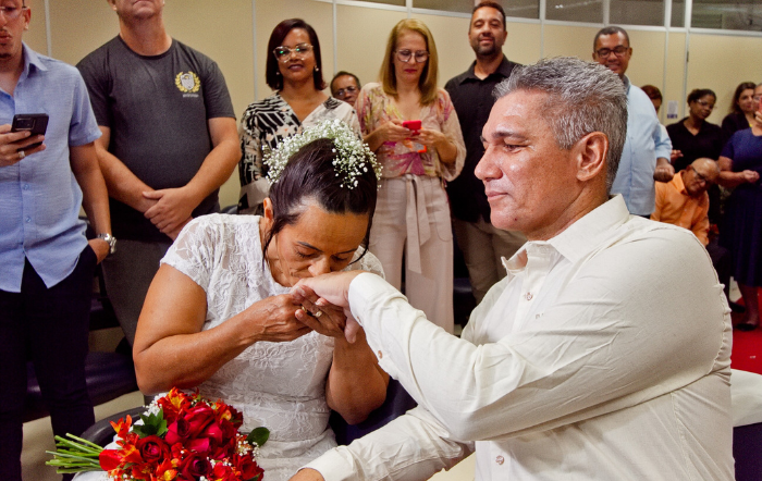 “O adoecimento foi o momento que mais nos uniu. Esse foi um tempo de conciliação, de rever os valores, o respeito entre os dois. Cheguei à conclusão que é essa a pessoa que eu quero para a minha vida”, destacou Samuel. “Foi justamente aqui no Hospital Pelópidas Silveira que tive mais tempo de estar ao lado dele, por isso esse desejo de fazer o casamento aqui. Apesar da doença, tem sido um momento muito satisfatório”, frisou Guida. Samuel ainda lembrou que seu pai também já foi paciente do HPS, e, na época, ele esteve no hospital como acompanhante, ampliando seu sentimento de gratidão pelo acolhimento e assistência prestados aos dois.