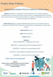 Durante este mês, seis médicos e quatro enfermeiros da UPA acompanham, ao vivo, os módulos oferecidos através de uma plataforma digital, com o objetivo de aprimorar o atendimento de urgência cardiovascular de acordo com diretrizes baseadas em evidências. Nesta terça-feira (22), a partir das 18h30, a sessão vai abordar o Acidente Vascular Cerebral (AVC).