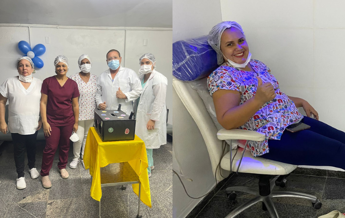 A equipe também participou de dinâmicas sobre a higienização correta das mãos, além de atividades de relaxamento e cuidados.