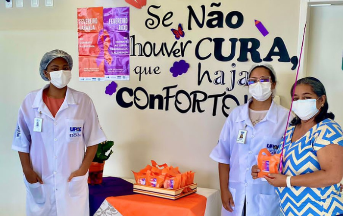 10 de fevereiro de 2023 – “Se não houver cura, que ao menos haja conforto”. Com esse mote, a UPAE Escada desenvolveu uma atividade em alusão ao Fevereiro Roxo e ao Fevereiro Laranja, movimentos que visam conscientizar a sociedade sobre o Lúpus, a Fibromialgia, o Alzheimer e a Leucemia.